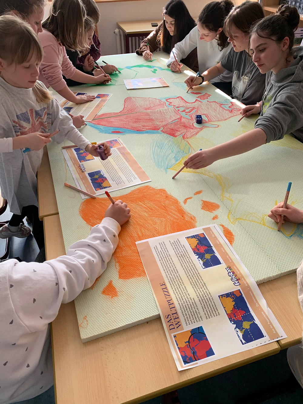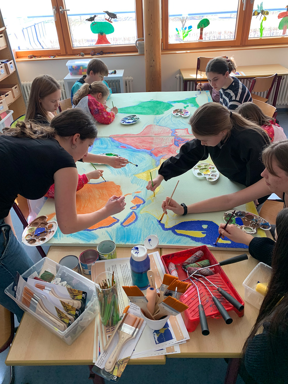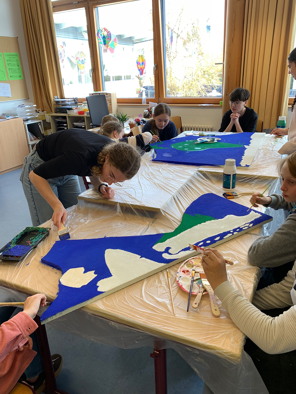 Die Schülerinnen und Schüler der beiden Schulen haben dabei mit viel Spaß, technischem und künstlerischen Geschick an fünf Nachmittagen zwischen den Faschings- und Osterferien zusammen gemalt und gebastelt.