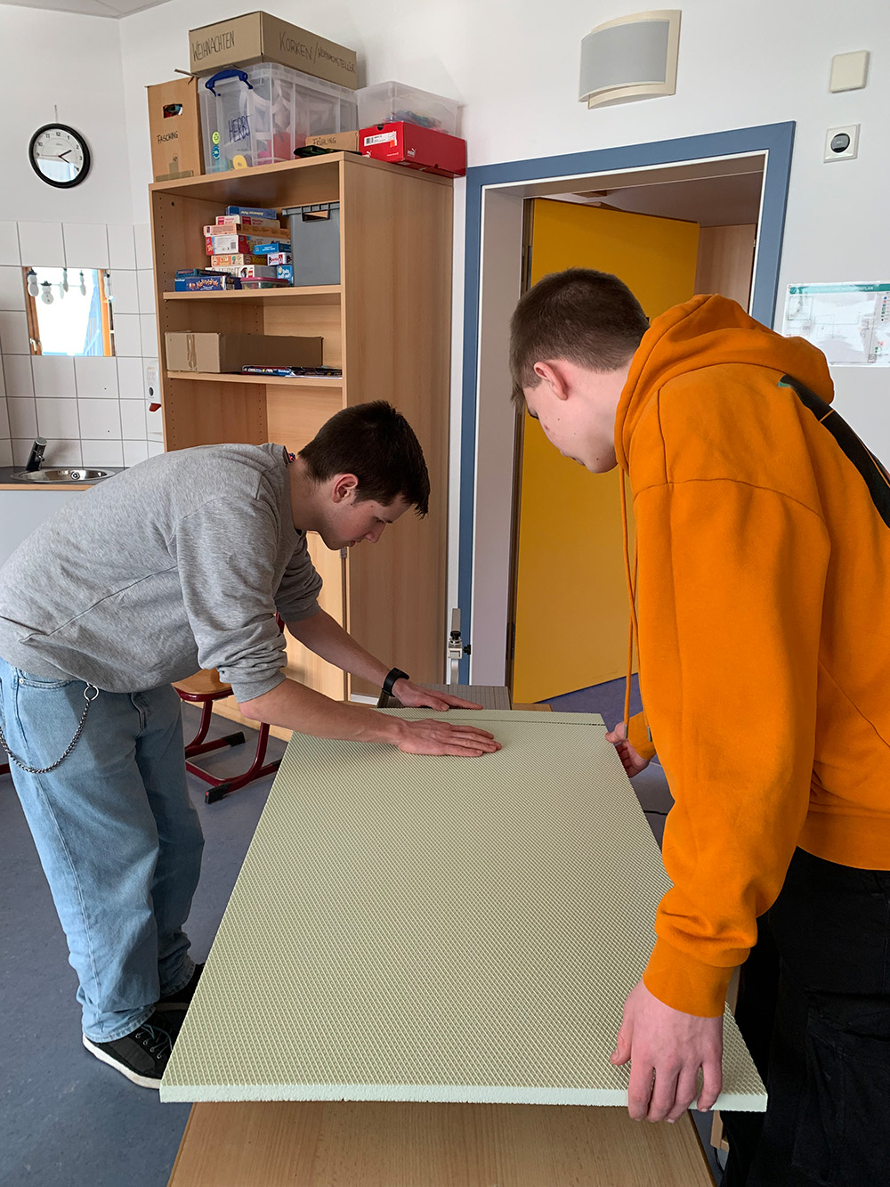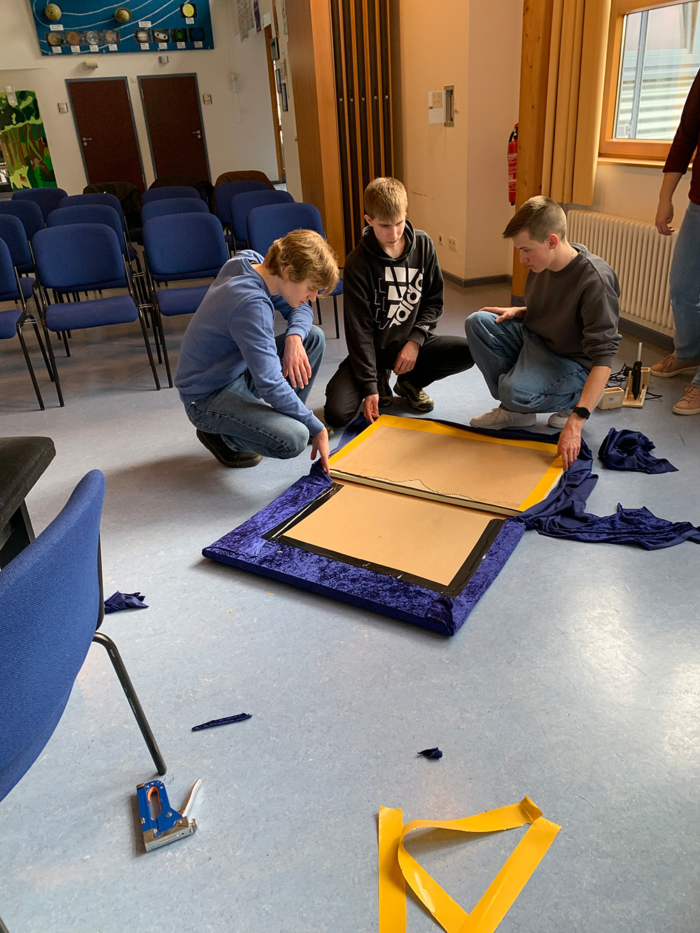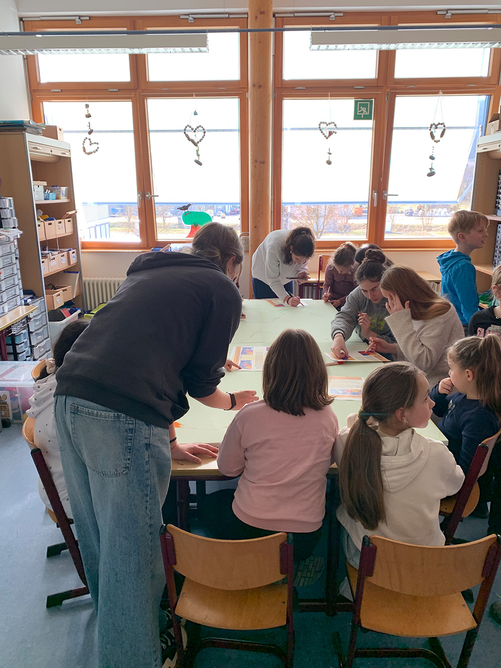 Schülerinnen und Schüler aus der Klassenstufe 10 und der Kunst-AG haben im Februar und März 2026 die Grundschülerinnen und Grundschüler der Schule am Ipf bei der Umsetzung und Gestaltung großer Bühnenbildrequisiten für das Musical „Felicitas Kunterbunt“ unterstützt. Die Zusammenarbeit erfolgte im Rahmen der bestehenden Kooperation mit den Grundschulen.