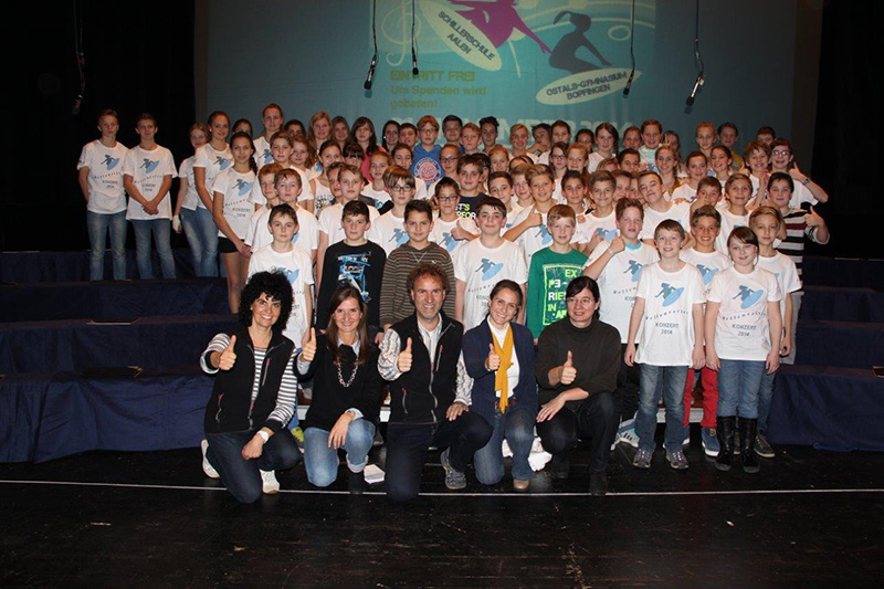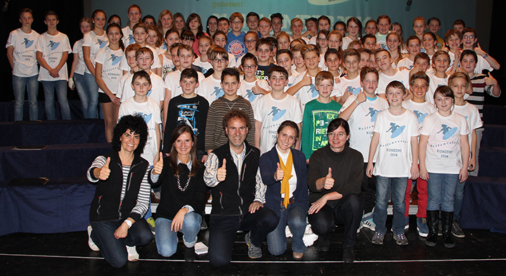 Das "Wellenreiter-Konzert" in Aalen war ein großer Erfolg! Der Dank für diese tolle Leistung geht an die beteiligten Schülerinnen und Schüler und an die betreuenden Lehrkräfte (v.l.n.r.): Frau Ott (Schillerschule Aalen), Frau Steinhoff (Chor Kl.7), Herr Ott (Chor Kl.7), Frau Bast (Chor Gesamtleitung) und Frau Rinklef (Tanzgruppe). Ein besonderer Dank geht an alle Eltern, die dieses Projekt unterstützt haben und am Konzertabend nach Aalen gekommen sind. Darüber hinaus möchten wir uns bei allen Sponsoren und beim Förderverein des Ostalb-Gymnasiums für die tolle Unterstützung herzlich bedanken.